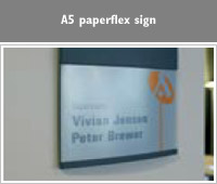 Paperflex sign for paper insert of international and letter sizes for quick updating.